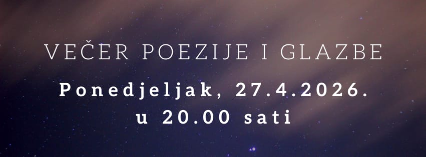 s velikim vas zadovoljstvom pozivamo na posebnu večer, Večer poezije i glazbe u izvedbi učenika Osnovne škole Ante Kovačića i goste iznenađenja večeras 27.4.2026. u 20:00 sati.